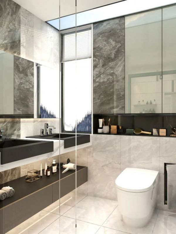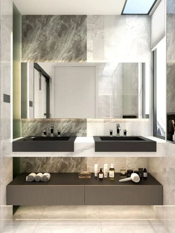 岩板作为近年超火的新型材料,用在浴室柜上成为高端、轻奢的一种象征,是现在很多年轻时尚家庭的新贵。