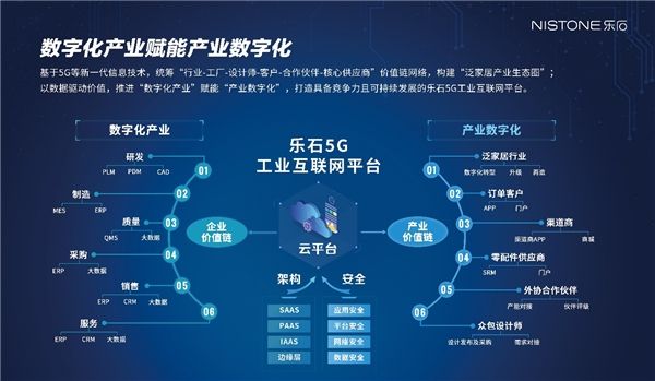 本次重点展示的 “乐石5G工业互联网平台”,是具备5G技术、云网结合、安全运维优势以及乐石在制造领域深耕多年的行业经验,以数据驱动价值,通过实现人、机、物的全面互联,构建一个全要素、全产业链连接的新型生产制造和服务体系,赋能产业数字化发展,降本提质增效。
