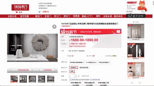 作为营销新内容,TATA木门除了在线下3000家门店展示视频外,也将视频形式“搬到”天猫、京东、唯品会等电商平台上,用漫游视频替代原先的图片做展示和引流。据淘宝官方数据显示,采用视频做主图的淘宝商品能提高20%的转化率。可见,动态视频形式的“带货”功力。