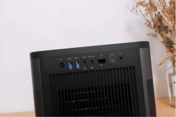 机身的主要接口在机身背部,从左到右依次为电源接口、USB3.0×2、HDMI、HDMI(ARC)、LAN网口、S/PDIF以及3.5mm耳机孔。接口丰富意味着更多样的玩法和拓展,比如我甚至可以用这个投影来接游戏机进行大屏互动体验。