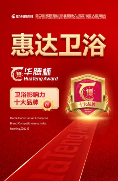 近日,“华腾杯”2021年榜单揭晓,惠达卫浴从百余家卫浴品牌中脱颖而出,荣获“2021卫浴影响力十大品牌”重量级奖项。惠达卫浴荣获“2021卫浴影响力十大品牌”大奖,不仅是消费者对惠达品牌的认可,也是对惠达品质的信赖,更是市场的最好反馈。