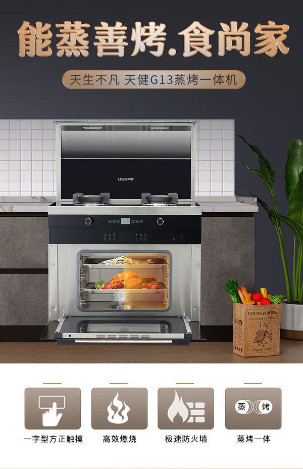 优格蒸烤一体集成灶作为一款集成厨电,优化空间是其一大抢眼的特色。通过对吸油烟机、燃气灶以及蒸烤箱的整合,形成一个紧凑型的整体,有效节省了空间的占用,整个厨房视觉效果变得开阔许多。