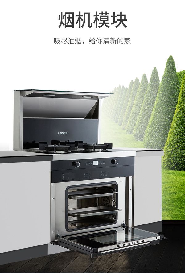 相比于传统的吸油烟机,优格蒸烤一体集成灶油烟吸净率更是高达99.7%,不必再为小厨房的清洁问题而烦恼。