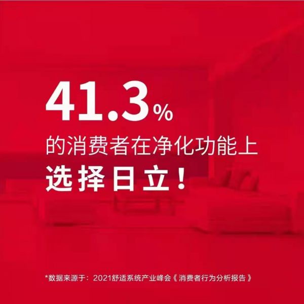 2021年5月20日,在2021舒适系统产业峰会上发布的《2021消费者行为分析》调研报告显示,日立家用净化中央空调以41.3%的用户第一印象品牌,荣获“2021年家用净化中央空调消费者首选品牌”奖;据奥维云网2021年度1-7月数据统计,在精装地产与高端地产领域,日立在行业多个维度都保持前列的优势地位,在品牌用户数量以及高端地产城市等多个维度来看,日立市场份额也取得佳绩。