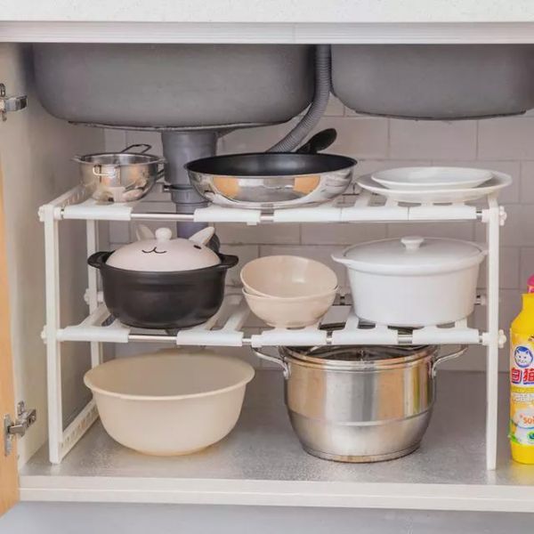 下水槽底下,千万别空着,赶紧利用起来,装它进去,置物容量大,可以将厨房锅盆全部收纳在上面,层数多,收纳方便,承重能力强,结实耐用。