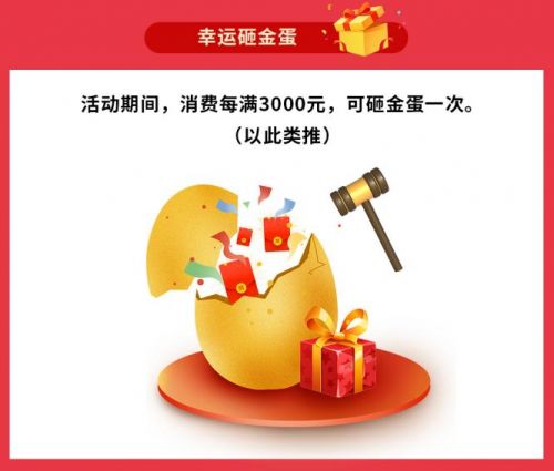在东宝床垫消费每满3000元即可砸金蛋一次,满6000元砸2次,以此类推上不封顶。金蛋一砸开,好运自然来。