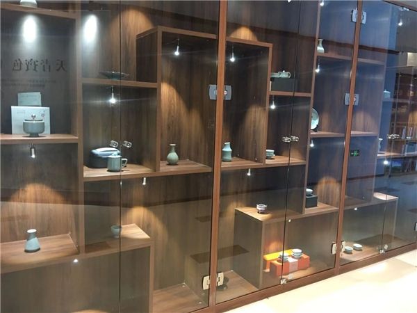 此次展览为期半个月,活动现场展出汝窑复原仿古作品50多件,现代文创作品40多件,展示品有出土的宋代汝窑碎瓷片、到汝窑生产所用的原石物料、茶酒具、文房用品、花瓶、瓷盘等。其中展示的仿-北宋汝窑“天青釉洗”为香港2017年拍卖2.94亿的复刻作品,其仿制工艺精湛,釉面蕴润、几近完美。汝窑文创作品橘瓣壶茶具套组,设计更是结合了中西文化,体现了“文化+创意”“文化+生活”的味道。展馆设计现代简约、以直线风格搭配黑、白、灰、棕色系、营造沉浸式氛围感。所有展品均来自深圳瑞百盛汝官瓷展览馆,展馆讲解员也在现场为观众介绍汝窑的鉴赏特点,使用、养护、收藏等知识让观众大饱眼福。
