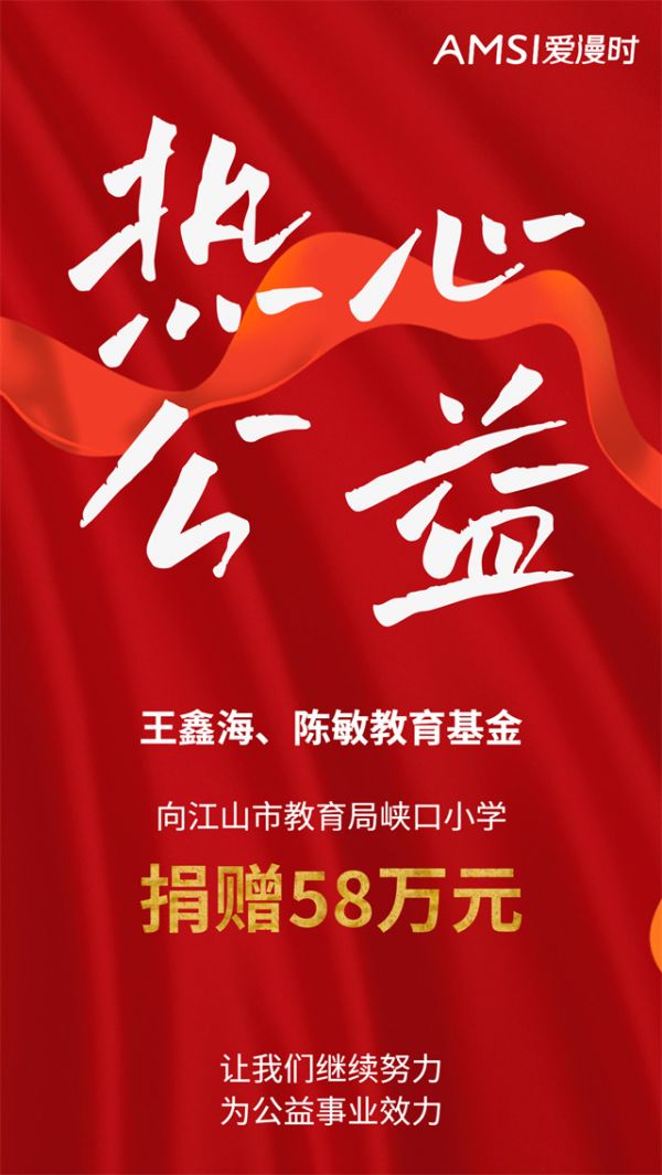 成立“王鑫海、陈敏教育基金”,爱漫时CEO-王鑫海用实际行动模范践行了社会主义核心价值观,充分显示了爱心企业“饮水思源,热心公益,回报社会,乐于奉献”的良好社会形象。
