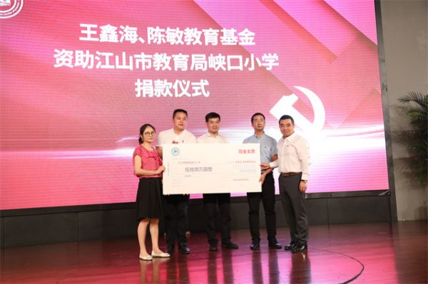 至此,在今年江山商会第二届第一次会员大会来临之际,成立王鑫海、陈敏教育基金,决定向峡口小学捐赠爱心助学基金580000元整。