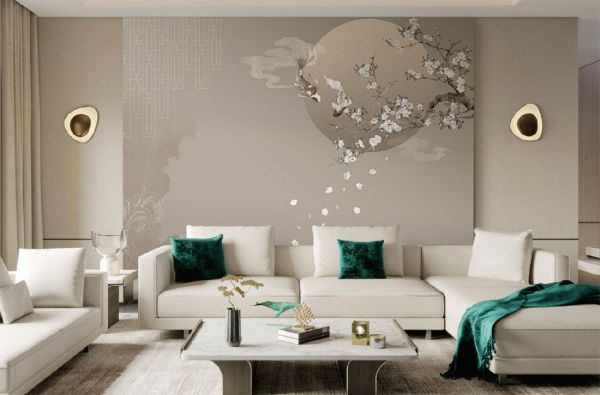 无论是沙发背景墙、电视背景墙,或者餐厅/卧室背景墙,新中式的天洋墙布背景墙,汲取中华文化精髓,用美妙设计语言传达东方神韵。