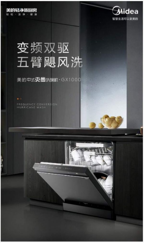 洗碗作为重复率高而又费时费力的家务工作,一直是人们饭后的烦心事。不想洗碗,交给洗碗机?然而,传统欧式洗碗机,不仅油腻碗碟清洗不干净,而且耗水耗电、无法有效除菌烘干、每次还要弯腰摆放操作,无法满足中国家庭用户需求。对针诸多用户痛点,作为中国智造的引领者,美的全新推出双驱变频洗碗GX1000新品,凭借“双驱变频,五旋飓风劲洗”、“少量分层洗,环保节能”、“钛净味灭菌技术”等核心技术优势,成为洗碗机界明星爆款,为更多的中国家庭健康保驾护航。