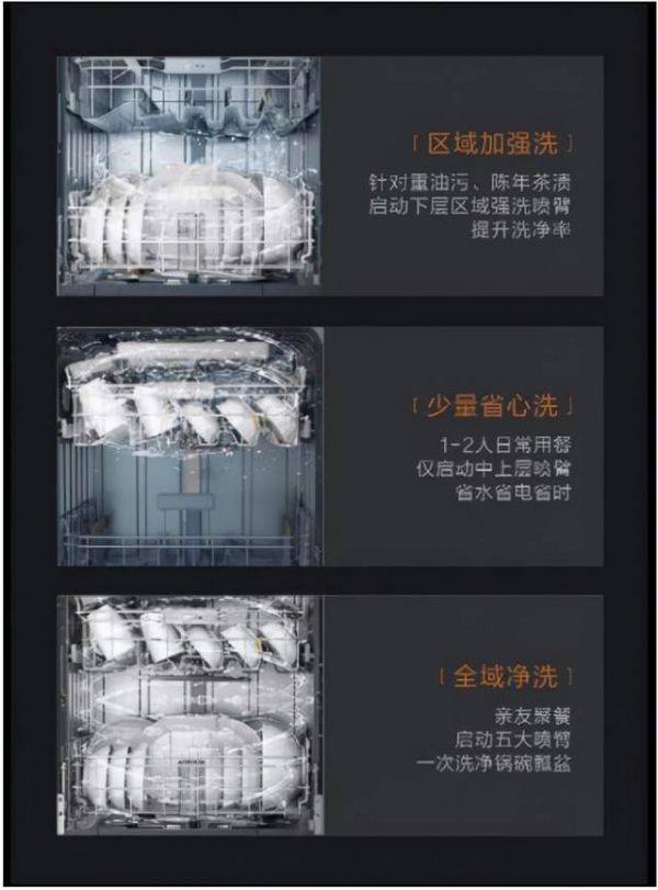 变频双腔五臂飓洗 洁净碗碟更“净”一步