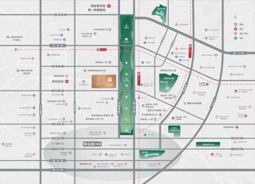 除了拥有优越的交通优势,万瑞府周边还集聚商业、医疗、教育等各项资源。商业资源:万瑞府坐拥中大国际商业中心、益田假日里购物中心、T11 BLOCK禾盛京广中心、西安大都荟、万达广场以及金鹰国际购物中心;医疗资源:项目周边20分钟车程内,汇聚了西安高新医院、西安医学院第一附属医院、西安市第一医院文理医院等多所三甲医院;教育资源:项目临近高新第一幼儿园、高新第一小学以及高新第一中学(初中部)等等,教育资源丰富且优质。