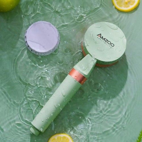 AMZOO阿木佐美肤花洒外观简约小巧,手柄处设计采用活性炭过滤技术,可以有效去除水中杂质、细菌和余氯,起到软化水质的作用。过滤出来的水再用余氯试剂测试几乎不含氯了!还内置了VC营养盒,含有天然柠檬精油、胶原蛋白、维生素C等活性成分,洗浴时可以滋润肌肤,柔顺头发。在花洒喷头处,它采用了增压出水孔,能让水流变得更细腻亲肤。