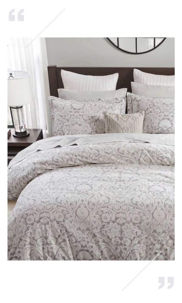 本季,我们的织物花型设计师也从中汲取了艺术灵感,将卷草纹理进行再设计,最终呈现于一张床品之中,成为“卧室扮美”的又一个好评力作。