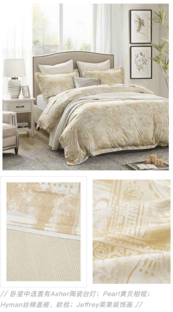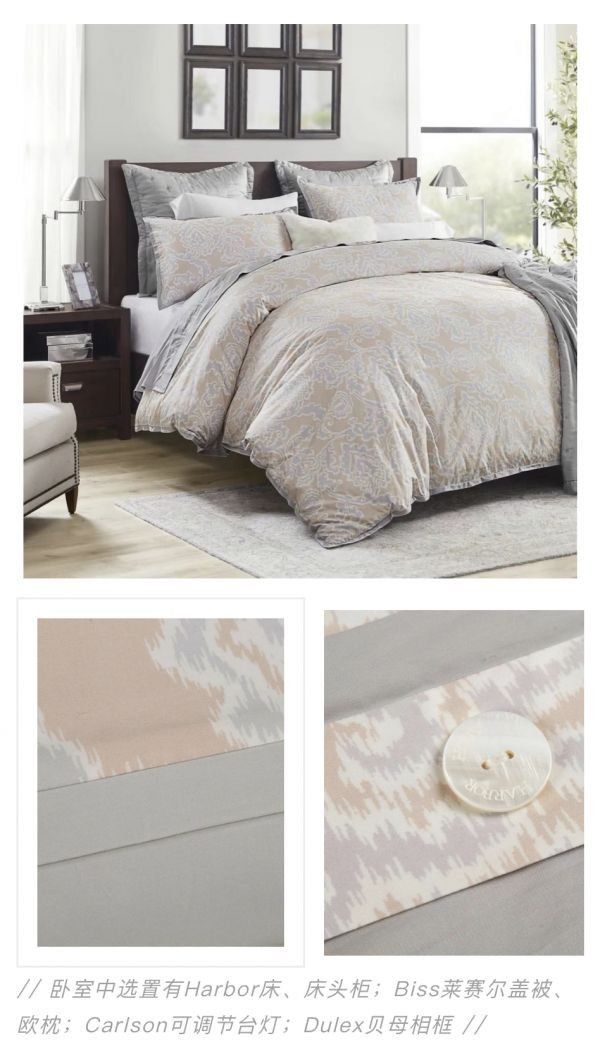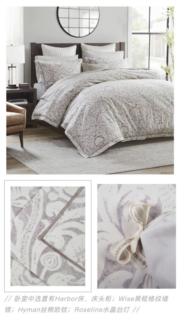 对Harbor House而言,卧室之美的塑造方式正源于人们心中对这片风景的向往。一床织物摇身变为吸睛的画卷,采撷灵感花绘入经纬之间,选择恰当的工艺生动还原抽象姿态,落布生花、暖意永续,一间「看得见风景的卧室」就此走来。