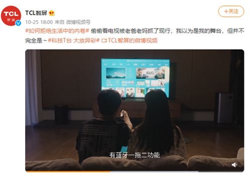 前两天,微博账号@TCL智屏 发布了一条很有趣的视频!剧情大概是一个小女孩深夜打开智屏,连上蓝牙耳机在家蹦迪,太可爱了!可惜最后还是被爸爸妈妈抓了个现行!原来,这台智屏的蓝牙功能支持“一拖二”,也就是同时连接两条蓝牙耳机,所以妈妈带的耳机里也能听到声音。