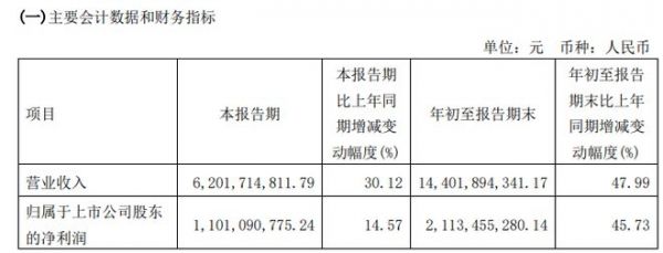 报告显示,2021年第三季度,欧派家居营业收入为62.02亿元,同比增长30.12%;归属于上市公司股东的净利润为11.01亿元,同比增长14.57%;加权平均净资产收益率为8.45%,同比增加0.71个百分点。