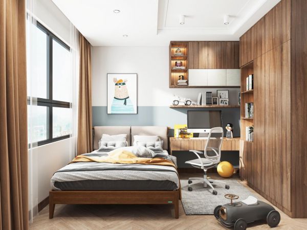 小户型想要将卧室空间最大化利用,还可以利用转角空间,打造一体式榻榻米,书桌、衣柜、榻榻米三位一体,不浪费每一寸空间,而且空间整体风格也能保持一致,实用和美观兼备~