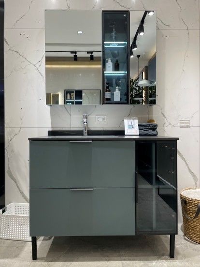 像21061这个款型的浴室柜,它的主柜是由双抽屉+玻璃柜开门式组成,分格置物收纳,可以很好地将常用品和备用品进行分开储放。如牙刷、漱口杯等日用品放置在玻璃柜内,将发胶、芦荟胶等日常护理用品放在镜柜后面,而如浴室备用纸、清洁剂等低频用品则可以放进台面下方的抽屉柜中。层层有序收纳,取放一目了然,不仅看着舒服,用起来也方便、顺手。
