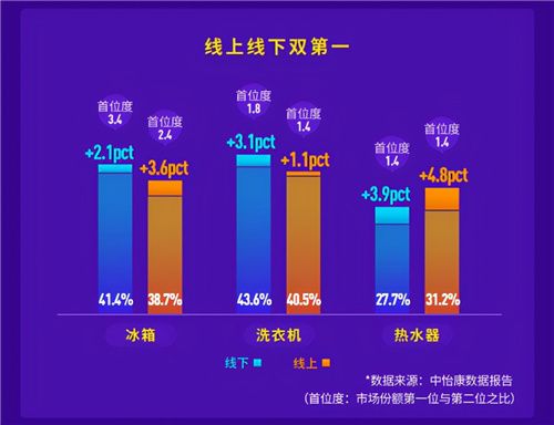 其中,海尔智家旗下洗衣机版块的市场业绩在稳居第一基础上实现再次突破。数据显示,线下份额从2020年的40.5%,提升至2021年的43.6%;线上市场份额从2020年的39.4%,提升至2021年的40.5%。