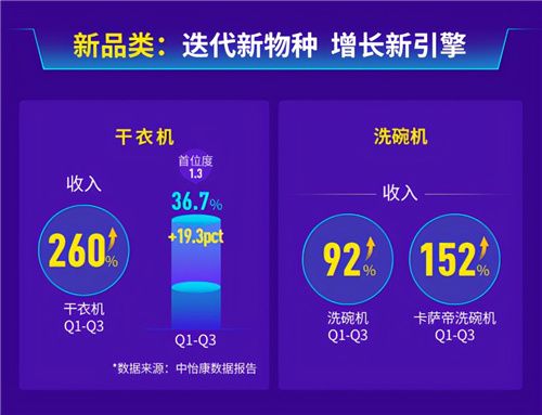 首先是原创科技新品拉动市场高增长。今年7月份以来,海尔洗衣机最新上市的叠黛和美洗干护理机,被业内评价为一体洗干的“新物种”。它最大的特点是能实现洗涤、烘干、护理3合一,能解决用户日常生活中遇到的各种洗护难题。
