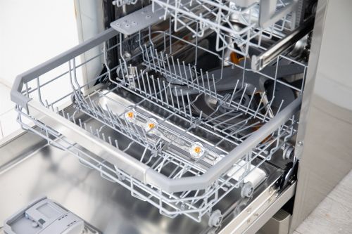 打开机门就是三层设计的碗篮,很多洗碗机都宣称自己是中式碗篮设计,但是真到了洗锅洗盆的时候发现根本就塞不进去,或者塞进去了就严重挤占别的餐具的清洗空间。LG洗碗机的内部拉篮看似没有多大的不同但是处处都有玄机。