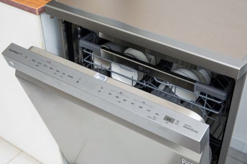 LG洗碗机用的是自家研制的DD直驱变频电机,采用水平运转的方式,这一点和现在市面上大部分洗碗机还在用的竖直运转相比,噪音小很多,工作时洗碗机声音非常小,还没有多少残水,并且能利用结构的优势做蒸汽喷口使用,在技术方面LG洗碗机无疑是比较领先的。