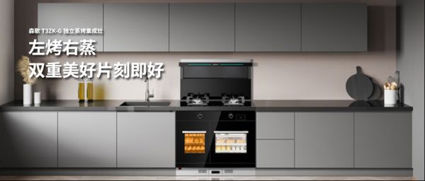另外值得一提的是,森歌T3ZK-G独立蒸烤集成灶新品,一经推出便广受好评。森歌T3ZK-G独立蒸烤集成灶下方功能柜采用了左烤右蒸的创新设计,真正实现了蒸烤同步、美味加速的双重烹饪体验。