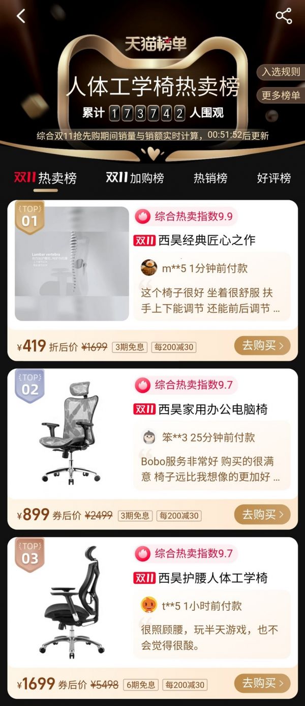 人体工学家具持续火热,西昊蝉联双十一线上销售额冠军