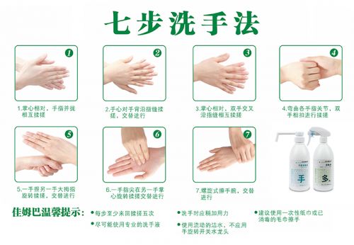 3. 处理完包裹后,及时摘下手套,注意手部清洁,按照“七步洗手法”认真揉搓双手,避免用不清洁的手触碰口、眼和鼻。尽量用佳姆巴次氯酸这样的环保安全消毒液,喷洒酒精可能会带来火灾隐患,而频繁使用84也会影响室内环境。
