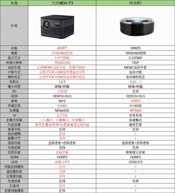 峰米R1和当贝投影NEW F3哪款配置强?一文看懂!