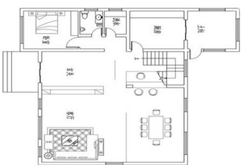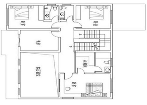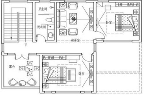 三层格局与二层几乎一样,西南侧增加了露台,使房屋周边的景观尽收眼底。南侧和东北侧的卧室,可以供客人居住,三层起居室可以改成开放式书房或休闲厅使用。