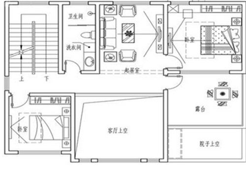 二层客厅通高的设计,让视野更加的开阔,西南侧和东北侧设置了多个卧室,可满足业主的居住需求。北侧搭配起居室,丰富了业主的休息生活。东南侧露台既方便业主晾晒衣服,又方便业主欣赏室外的美景。