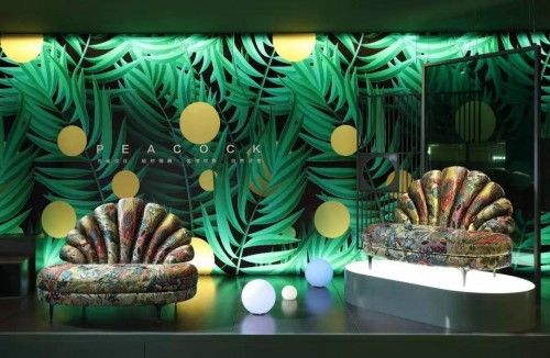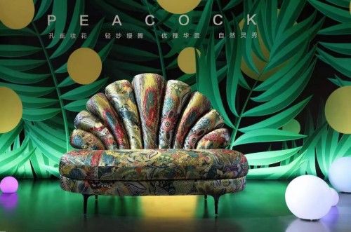 如果要例举一个帝标最有代表性的国风单品,那必然非“孔雀王座单椅“莫属。孔雀王座汲取孔雀的灵动之感,三种花纹勾勒其中,数十种色彩交错飞舞,营造出流动的美感。以自然之灵气为本心,强调刚柔并济的内涵,兼具时尚与温暖,大胆的色彩搭配巧妙的为整体丰富了层次感,表现出活力的气质与强大的时尚国风韵味。