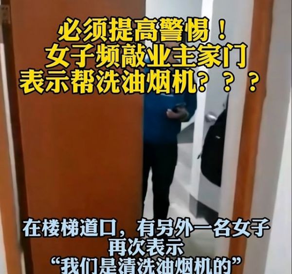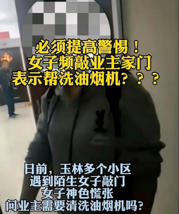 近日广西桂林的一位网友爆料,在11月16日当天自己在家中看电视,突然门外就传来敲门声,网友通过监控看到了一位陌生女子站在了自己家门口,于是便询问是做什么的。对方回复称是免费清洗油烟机的。