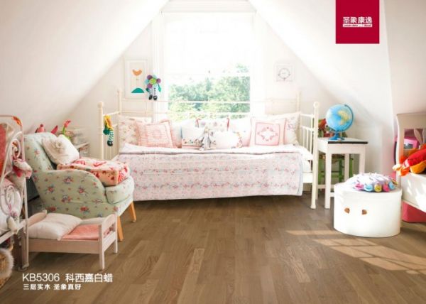 综合各项指标,可以说三层实木地板在各类地板中是拔得头筹。如圣象康逸的三层实木地板三拼花系列的表板是从世界范围内挑选栎木、黑胡桃、白蜡木、玛宝木、赛鞋木豆等珍稀百年原木,采用纹理重组工艺,并通过着色、拉丝、染色、烟熏等工艺,轻松驾驭当下流行潮流风格,为地板赋予全新的艺术感官。同时,锯切工艺以及欧洲开放式喷漆技术,使木材能保留活性的同时,释放出素有“空气维他命”之称的芬多精,木香四溢,持续流溢清香,净化空气,被誉为“会呼吸的地板”。