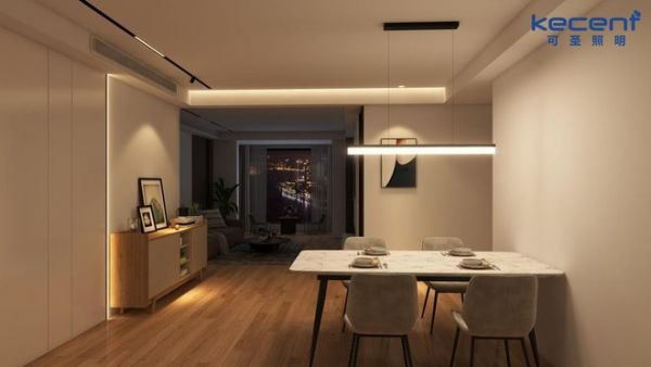KECENT可圣照明:民以食为天,餐厅作为“食”之所在,在灯光设计方面自然容不得一丝马虎。从如今的商品房户型来看,餐厅既有空间较为宽敞的独立模式,又有客餐厅一体及餐厨一体的模式,后两者在考虑灯光设计时既要考虑餐厅自身的光照使用情况,又得结合客厅或厨房的灯光需求,因而更考验设计师的功力。