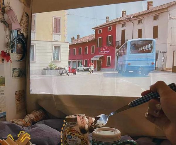 同时这款投影仪十分小巧,差不多和一台iPhone13一样高,让你可以直接塞进包包和朋友外出活动、露营。