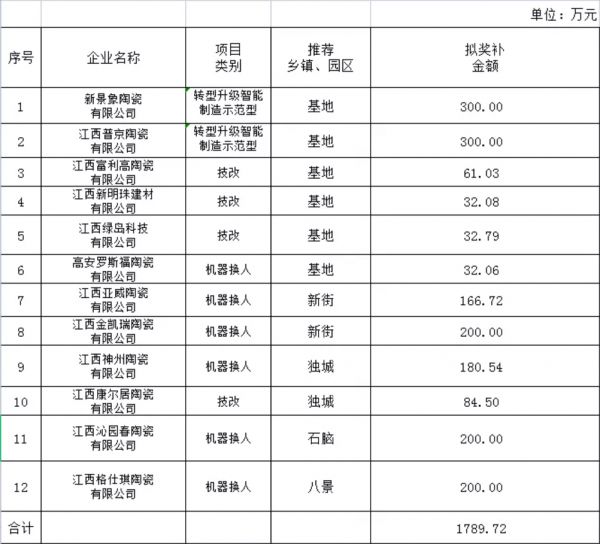 陶卫快讯 | 高安12家建筑陶瓷企业拟获1789.72 万元奖补!