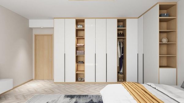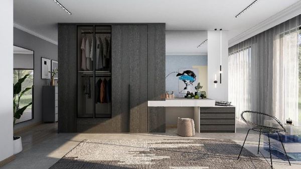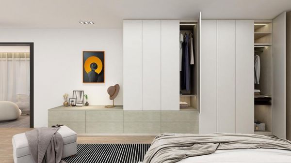 在定制收纳中,人性化设计尤为重要,但总会有些不尽如人意。骊住家居在考虑到收纳与美观的兼顾性,利用墙面空间进行“一柜到顶”的设计,将原有2400mm的门板提升至2800mm的高度,实现空间效果的升级。此外,柜体采用进口树脂膜进行表面涂层处理,打造出了既美观又宜于环境保护的高品质产品。通过门板利落简练的线条引导,让收纳空间有了高雅而舒适的氛围。通顶的设计,从视觉上增加了房屋的高度,而且从根本上解决了会藏污纳垢的困扰,将空间美学立体化。