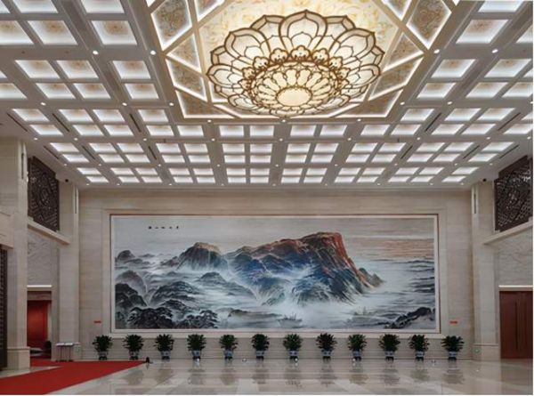 为更好地以“中华艺术”彰显建党百年底蕴,本次两盏大灯的设计均出自于中央美术学院壁画系主任唐晖之手,以国画在灯具设计上的应用,折射出中华艺术的融会贯通与博大精深。