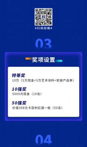 1、“一字万金”特等奖:10万,其中(5万现金+5万艺术涂料+软装产品券)