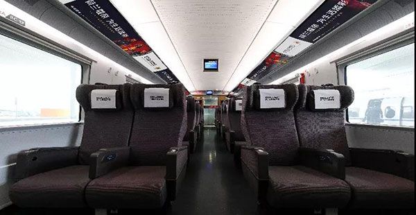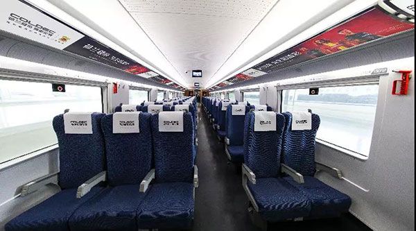 荷兰蔻帝高铁冠名品牌专列一等座车厢内景
