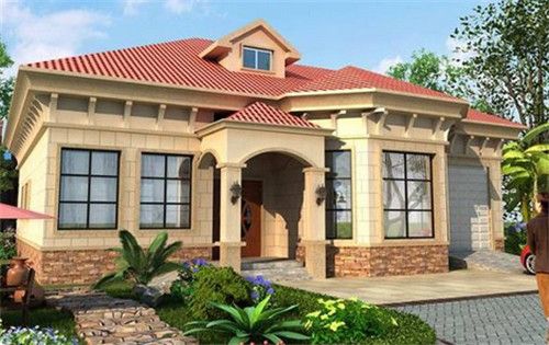 这款房屋的外观比较简单,但色彩搭配和细节处理很好。走廊上的罗马柱,层叠式屋顶结构,让房屋看起来更有活力。走廊的设计,既好看,又可以供业主玩耍。楼上的小阁楼,则可以打造成书房或者儿童卧室,给宝宝一个安静的读书或睡觉环境。