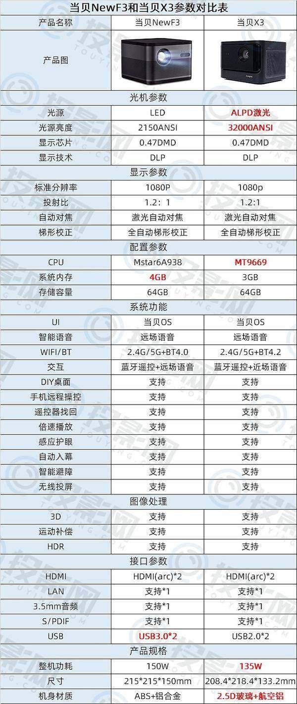 在其他配置上,因为产品线的不同,但也可谓是伯仲之间。当贝X3搭载的是MT9669的芯片,当贝NEW F3采用的是Mstar 938芯片,两者都拥有旗舰级的性能。要真说它们之间的区别,小编觉得它们是互补的存在,当贝NEW F3是4GB的内存,同时拥有双USB3.0接口。当贝X3支持升级了音效,支持杜比原声,感受更真实的现场。
