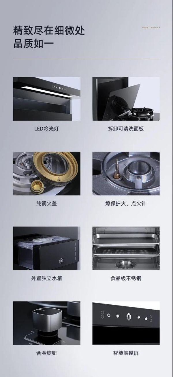 博净分体式集成灶,烹饪有态度,煎炸蒸煲煮,样样都精通。高颜值,大火力,鲜蒸嫩烤,媲美私厨,烹饪更得心应手。多重美食功能,简单操控,懂你所需,轻松搞定多人用餐。