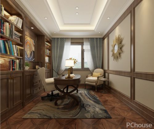 书房作为一个相对比较安静以及私密空间整体采用无主灯设计,在整体房间烘托出了安静的氛围,十分贴合空间的属性。