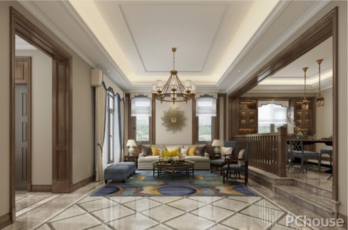 中式风格的客厅具有内蕴的风格,为了舒服,中式的环境中也常常用到沙发,但颜色仍然体现着中式的古朴,中式这样表现使整体空间,传统中透着现代,现代中揉着古典。这样就以一种东方人的‘留白’美学观念控制的节奏,显出大家风范,其墙壁上的字画无论数量还是内容都不在多,而在于它所营造的意境。舒缓的意境始终是东方人特有的情怀,任千年的故事顺指间流淌。