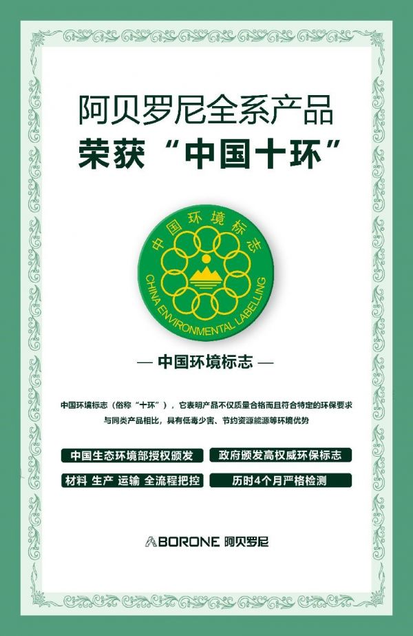 阿贝罗尼艺术涂料此次通过十环认证,也证明了该品牌有着完善的生产、设计、施工等环节,产品的环保性能也是毋庸置疑的,十环认证是国内较高标准的绿色环保认证,也是唯一由政府授权颁布的权威环保产品标志,充分说明了阿贝罗尼产品的极致环保。正是由于具备了十环认证这种证明性标志,使得消费者知道了阿贝罗尼艺术涂料是完全无害的,可以更加放心的选择。